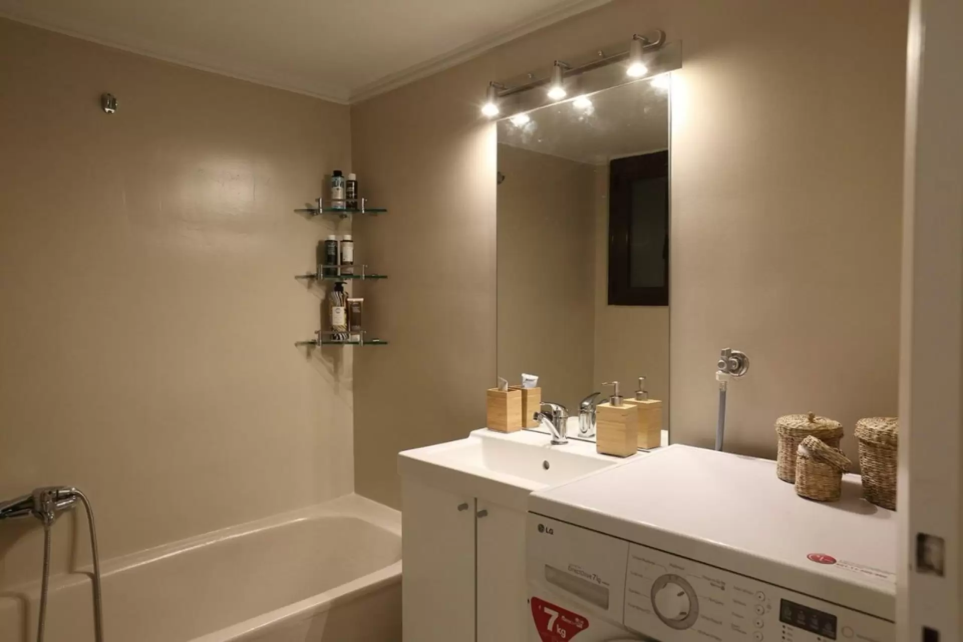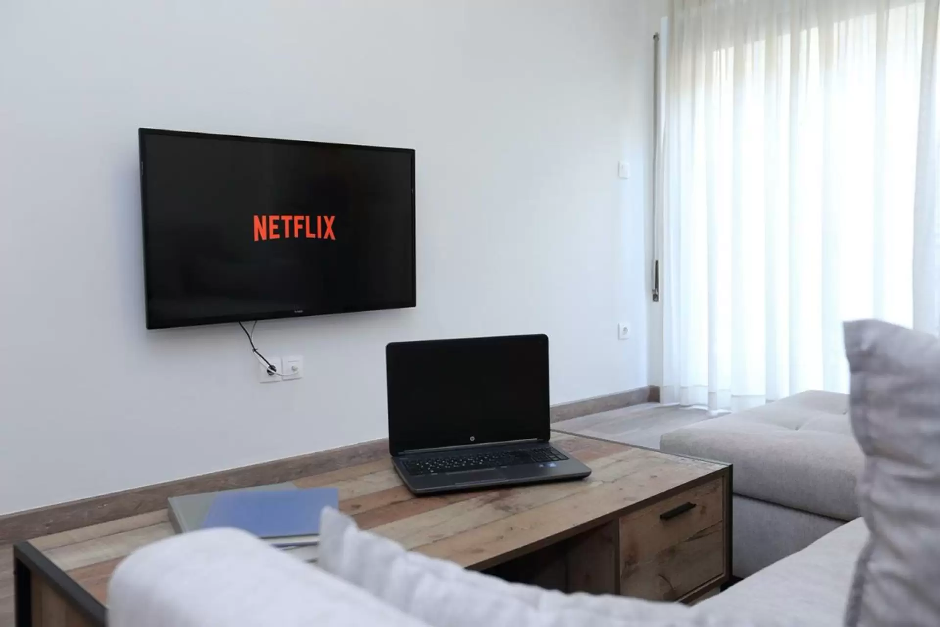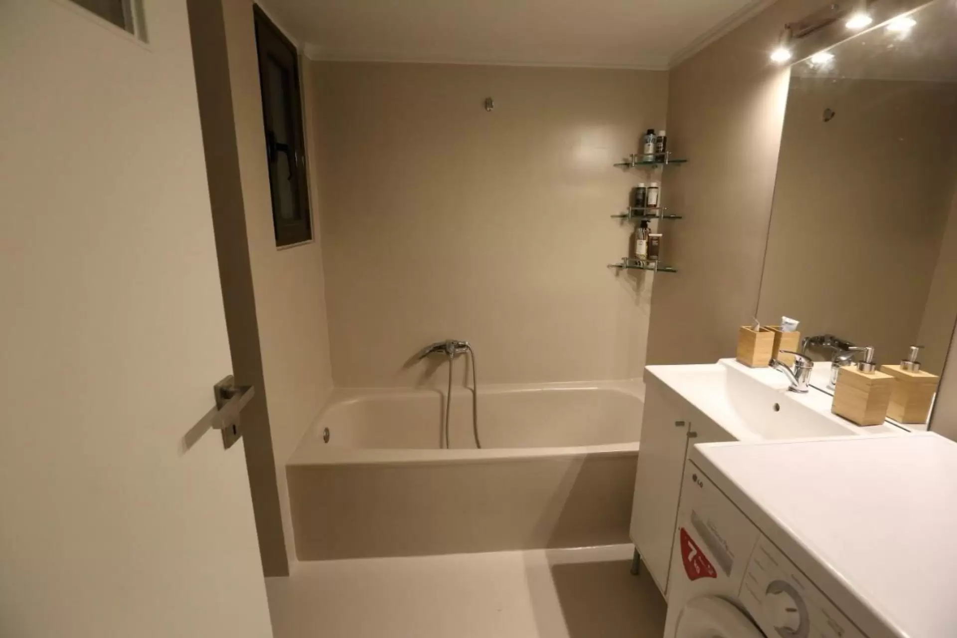 Entering this apartment, you will find a comfortable living room with a cozy sofa and high-tech flat screen TV for your entertainment needs. Additionally, the kitchen is fully equipped with all the necessary stuff.
