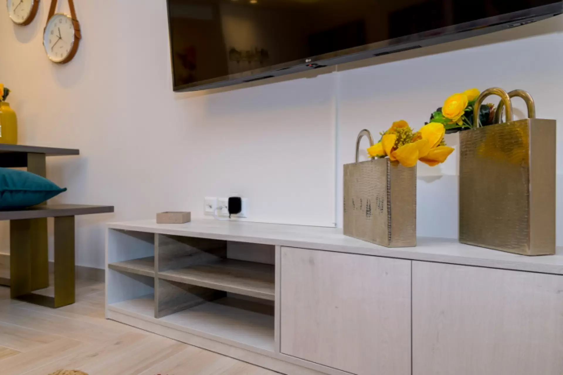 The apartment’s 2 bedrooms have a reposeful double bed and a flat screen TV for extra coziness.