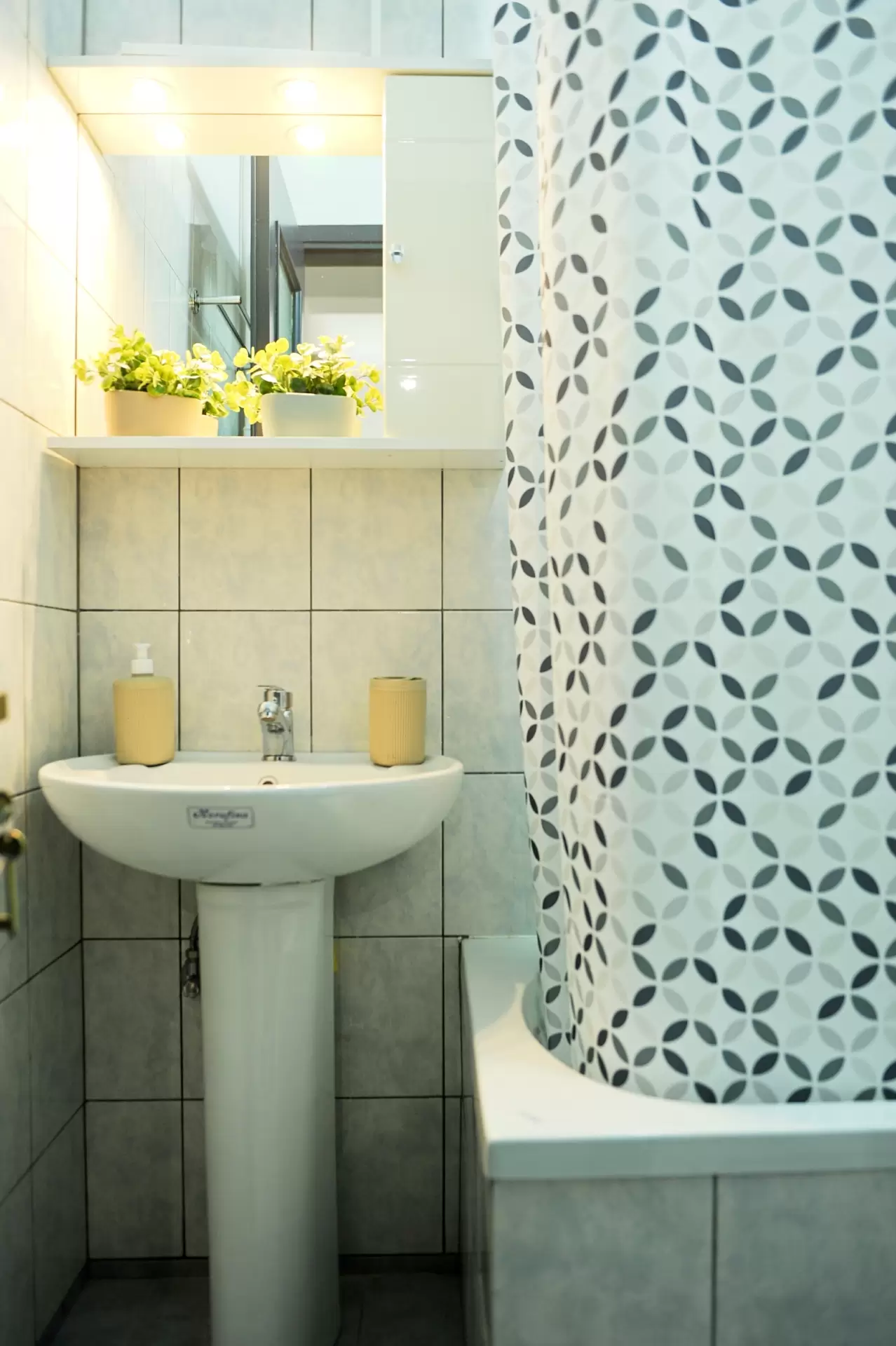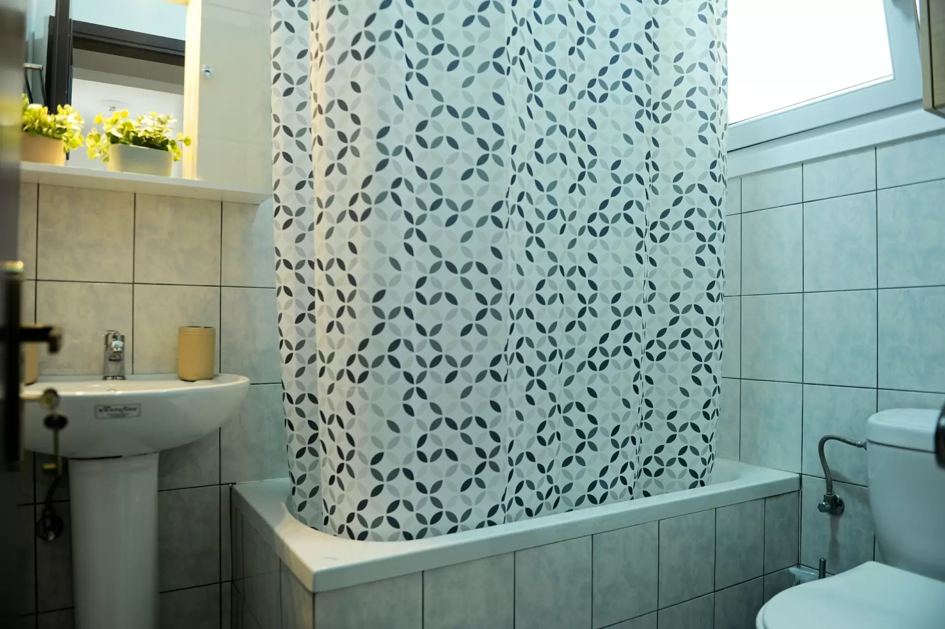 Entering the house, you will find a comfortable living room with a cozy sofa and high-tech flat screen TV for your entertainment needs. Additionally, the kitchen is fully equipped with all the necessary stuff.