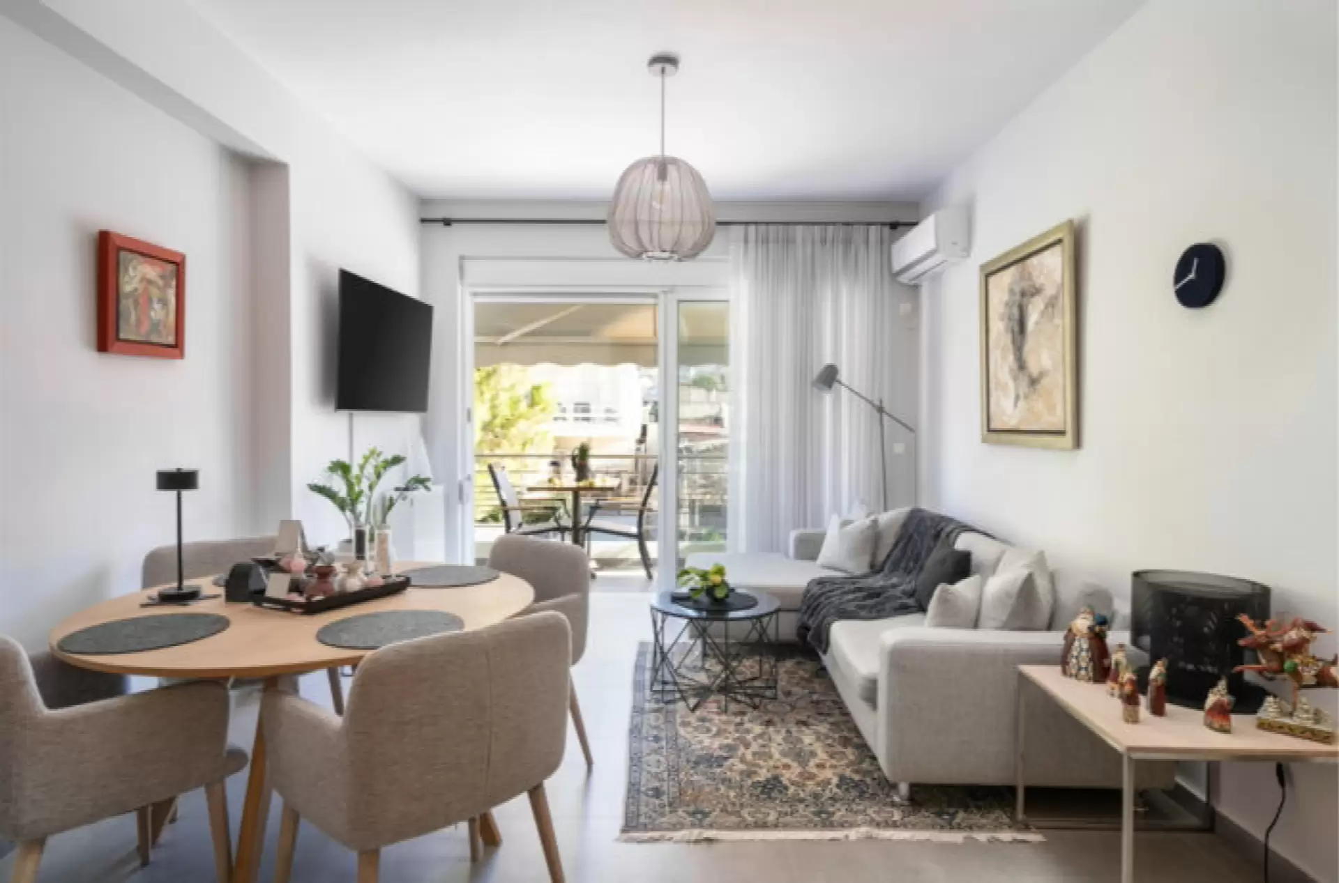 Welcome to Athens, the capital city of Greece! You are currently looking at a modern, newly renovated 65m2 apartment with 2 bedrooms on the 1st floor, located in the area of Alimos, one of the most beautiful & famous areas of Athens.