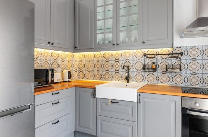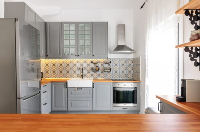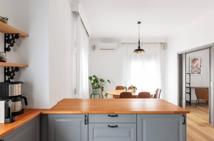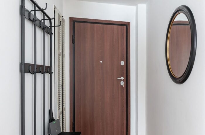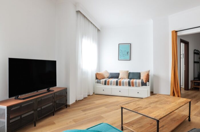 Entering this apartment, you will find a comfortable living room with a cozy sofa and high-tech flat screen TV for your entertainment needs. Additionally, the kitchen is fully equipped with all the necessary stuff.