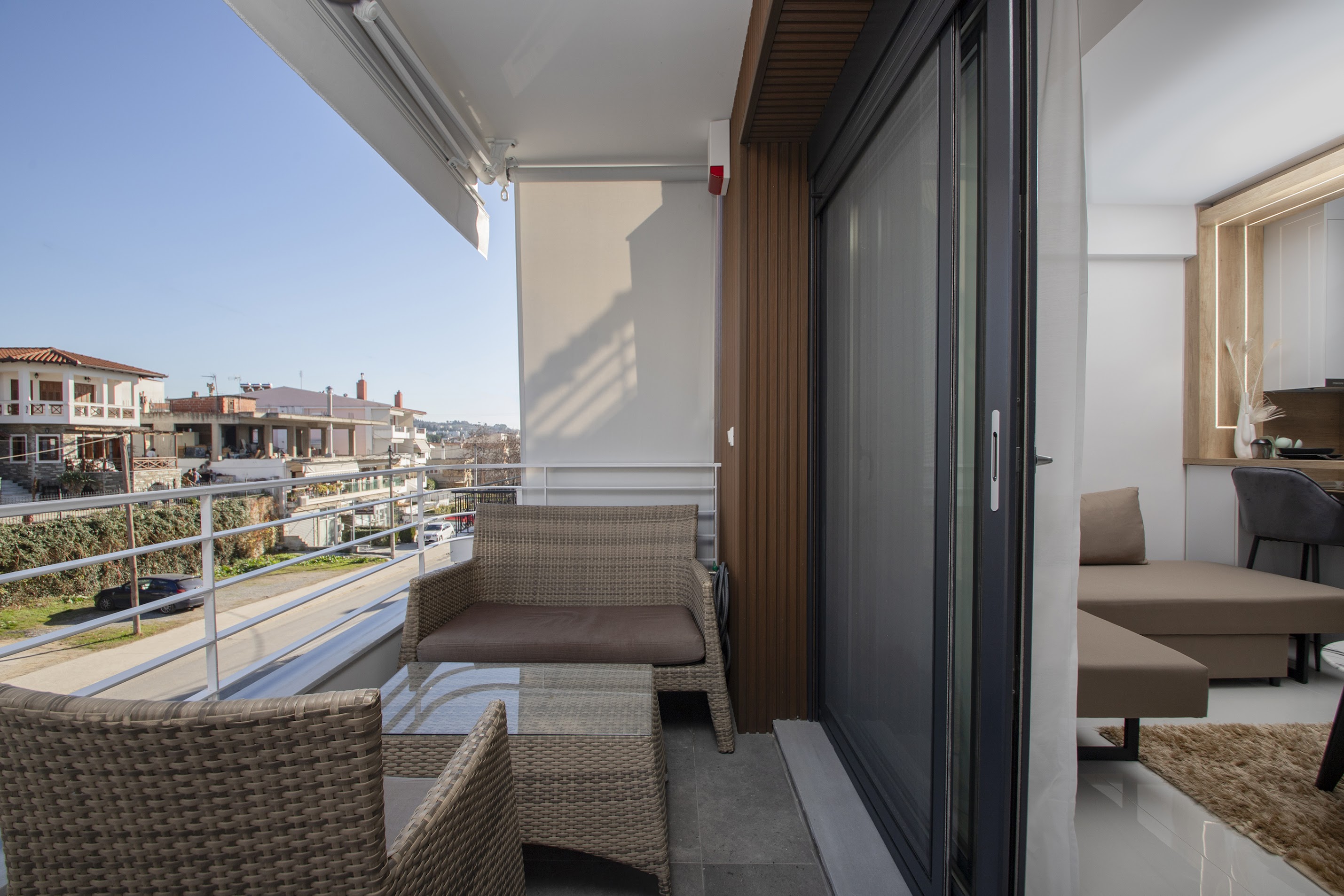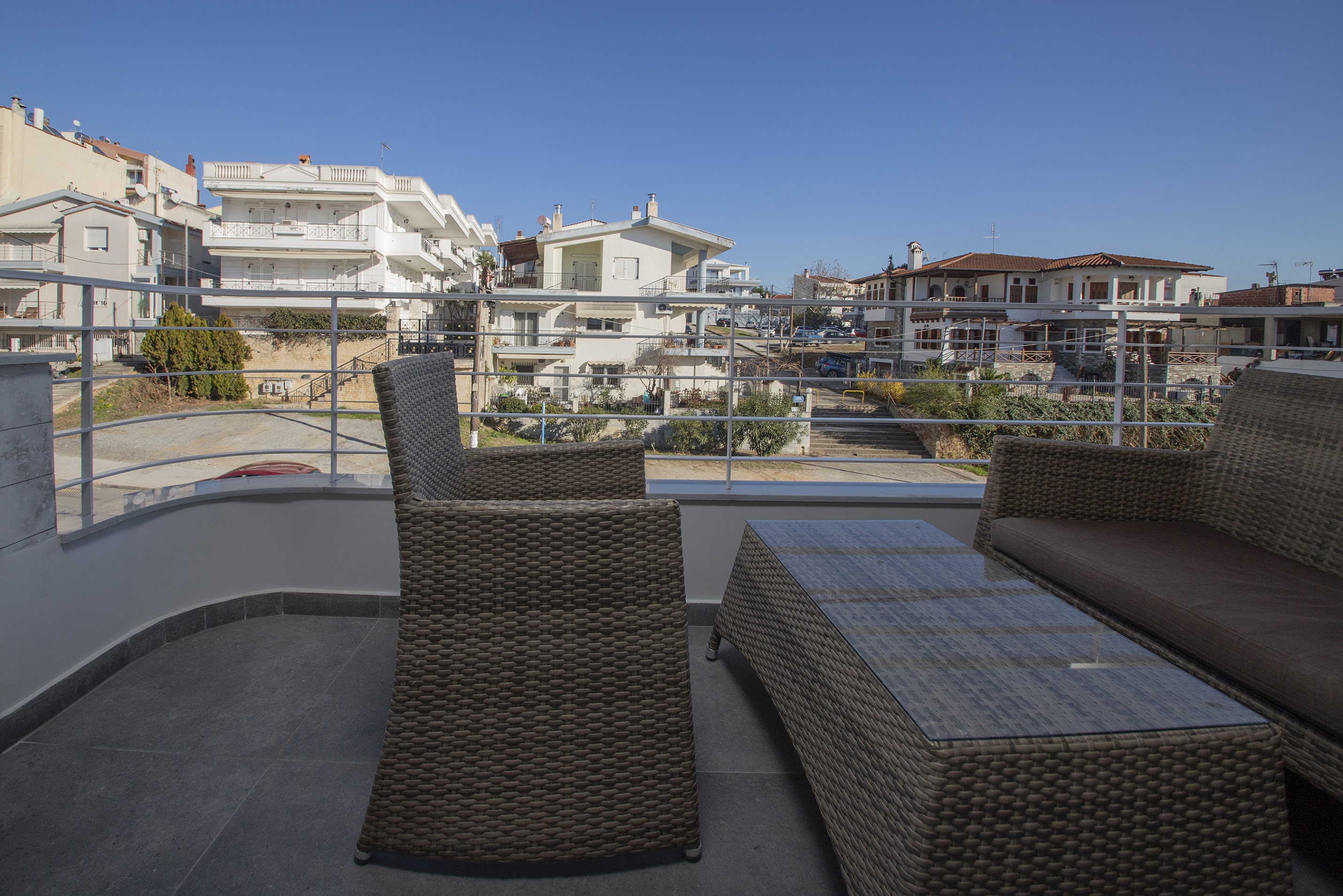 Public parking available. Access by car or bus: 15 minutes from Aristotelous sq. and castles, 20 min from train station, 1 to ring road exit to the airport, 200m from super market, cafes, pharmacy.