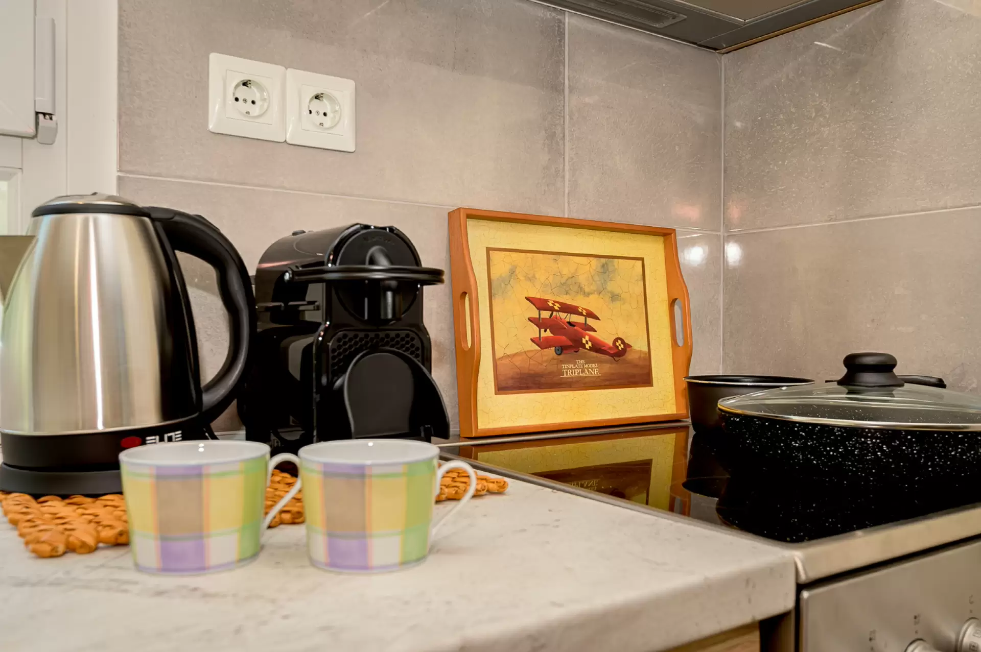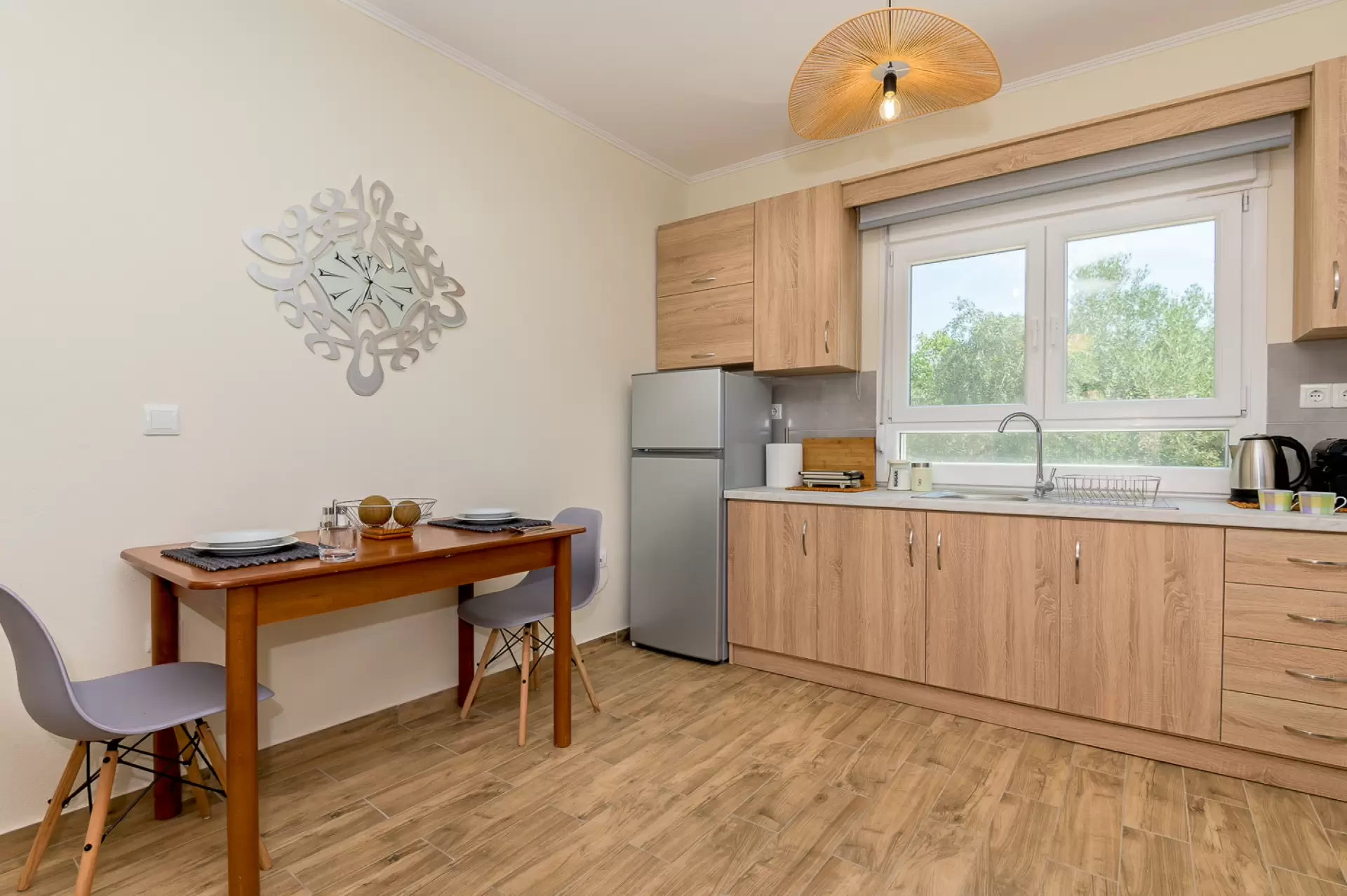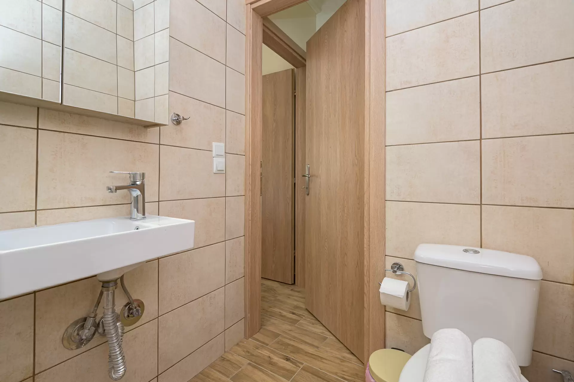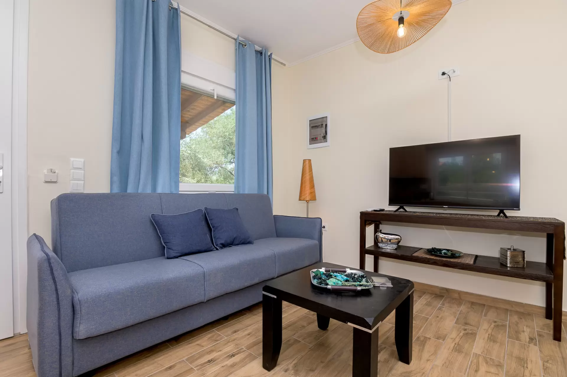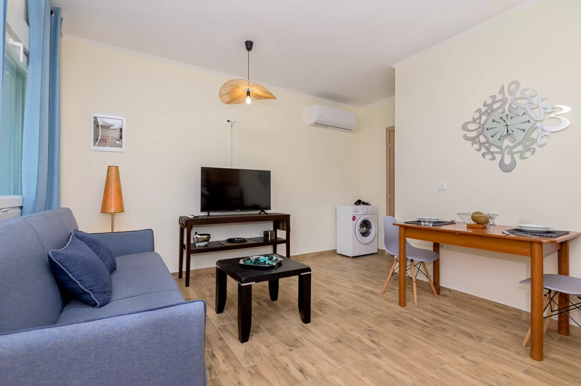 Entering the house, you will find a comfortable living room with a cozy sofa and high-tech flat screen TV for your entertainment needs. Additionally, the kitchen is fully equipped with all the necessary stuff.