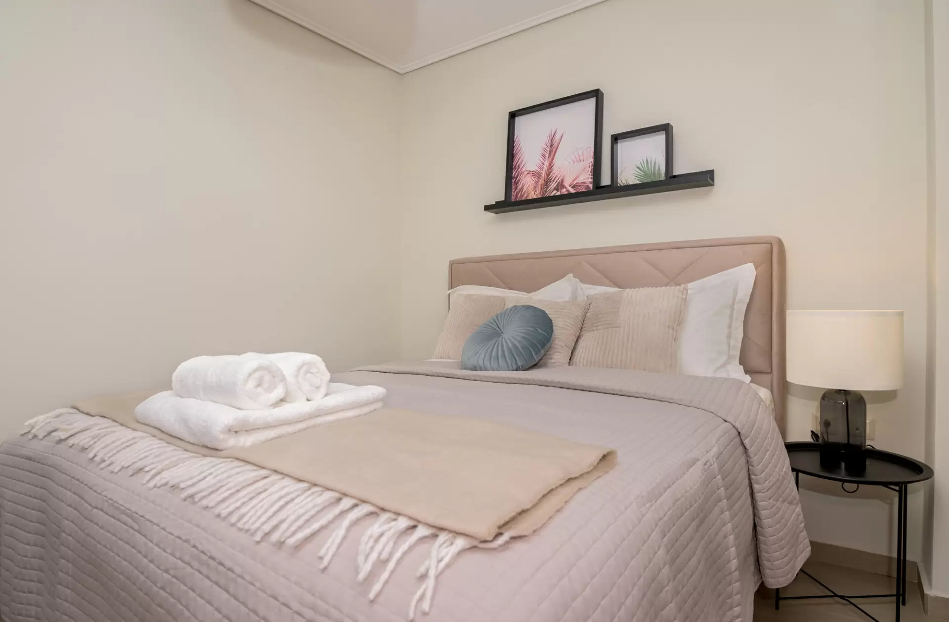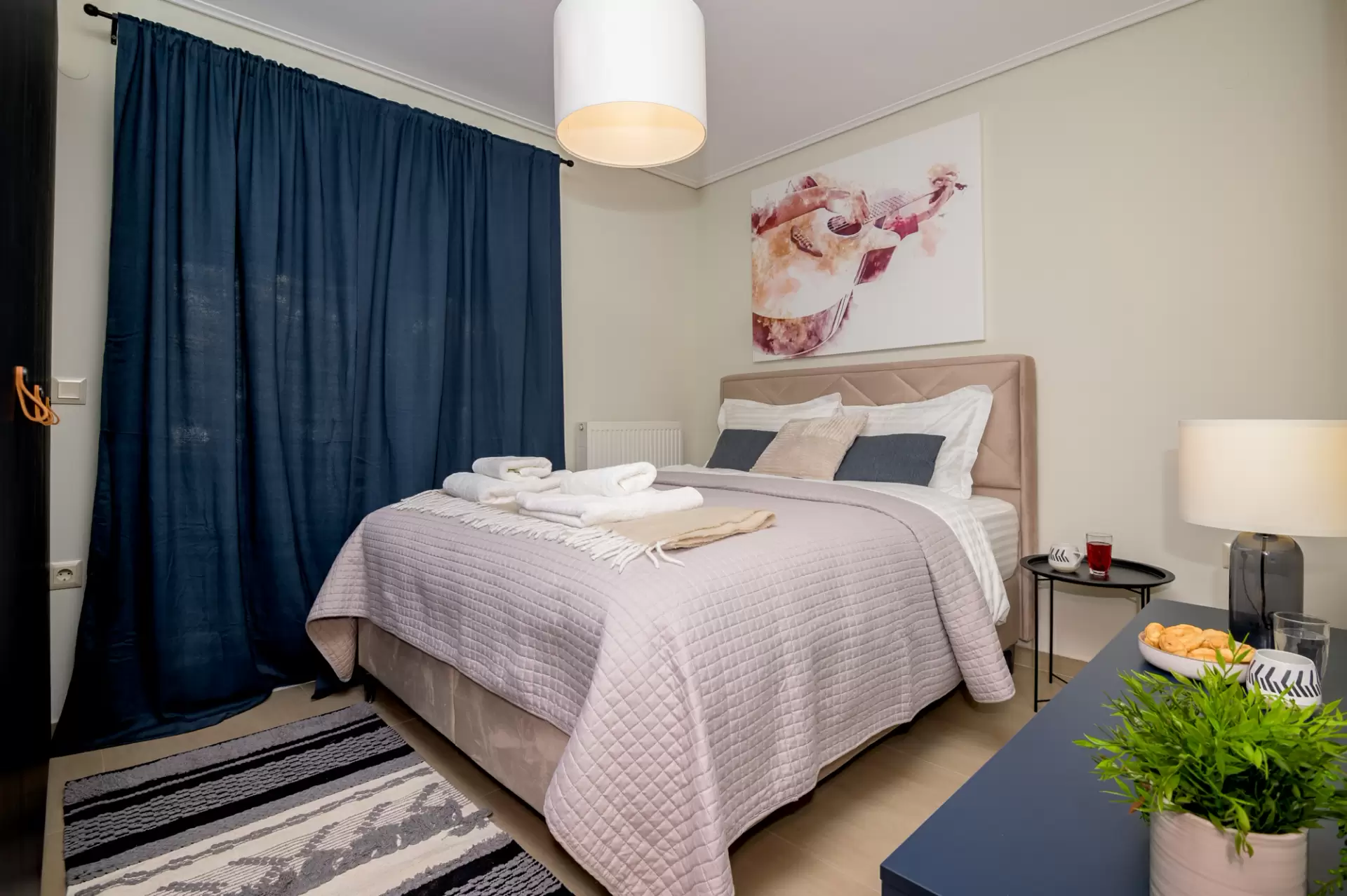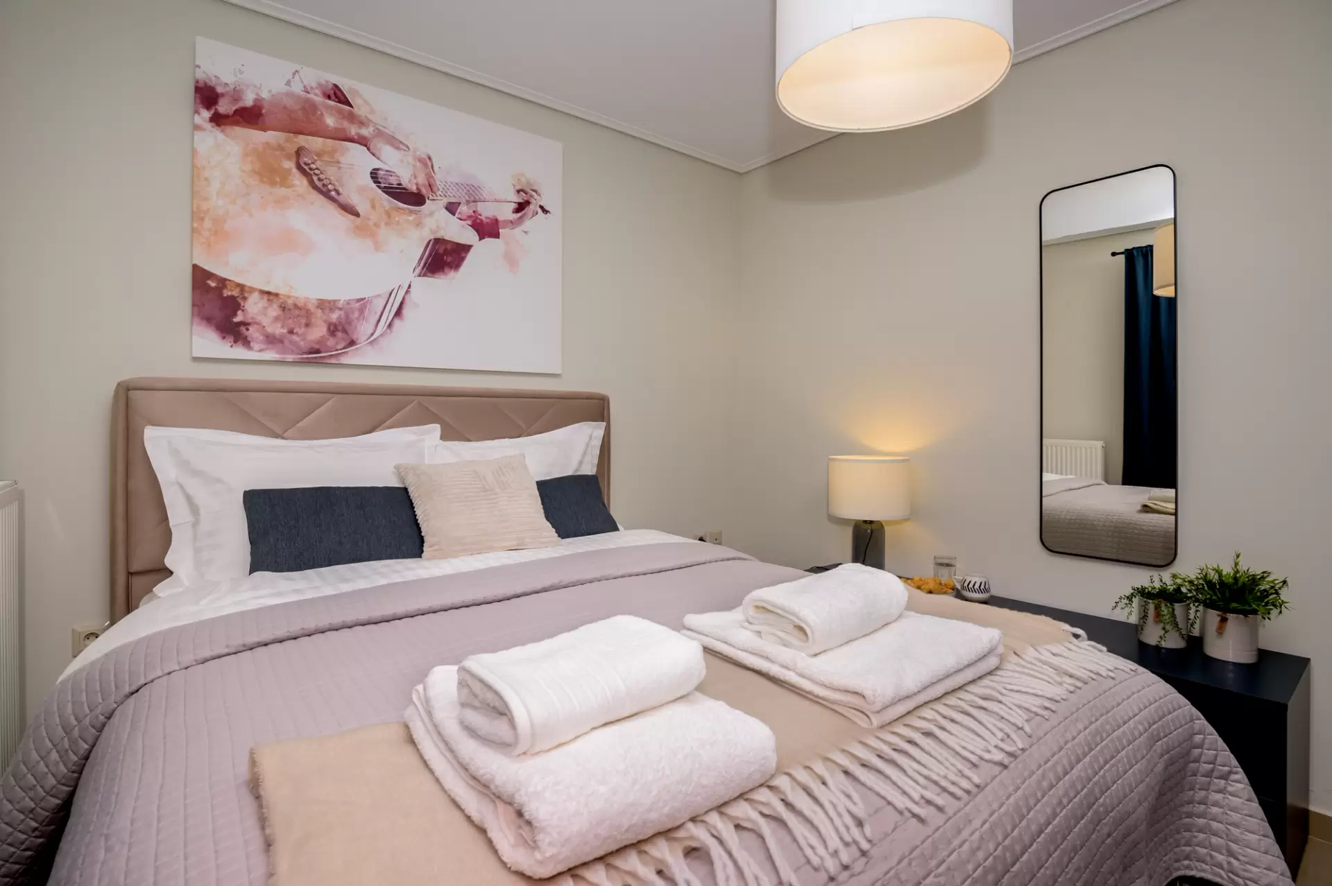 The apartment’s bedrooms have reposeful double beds for extra coziness.