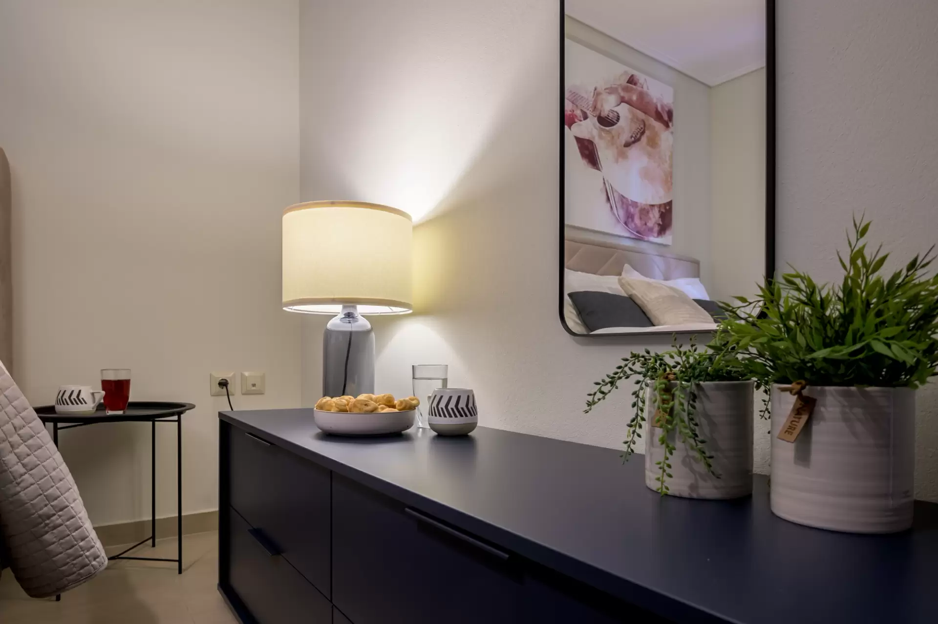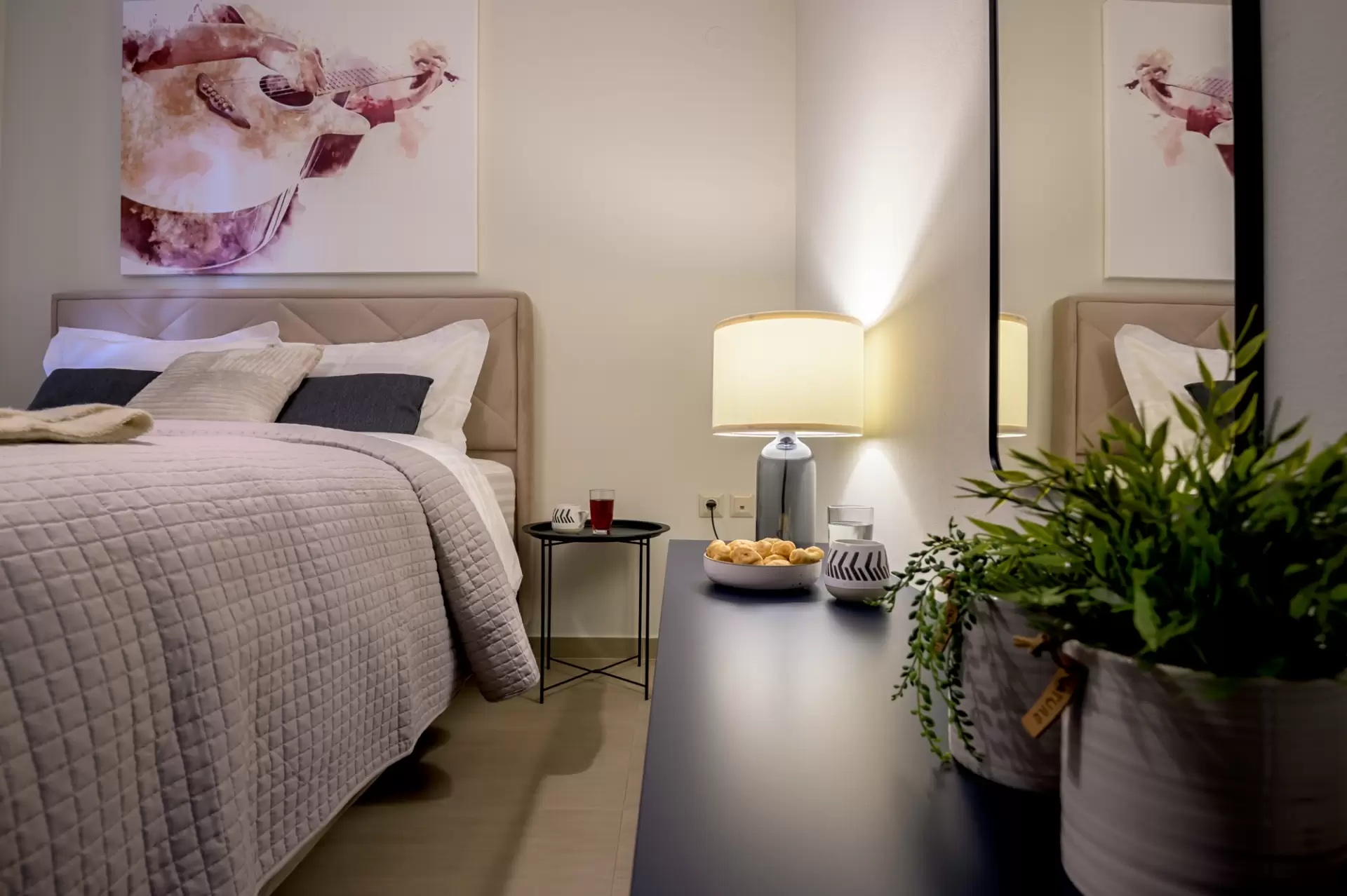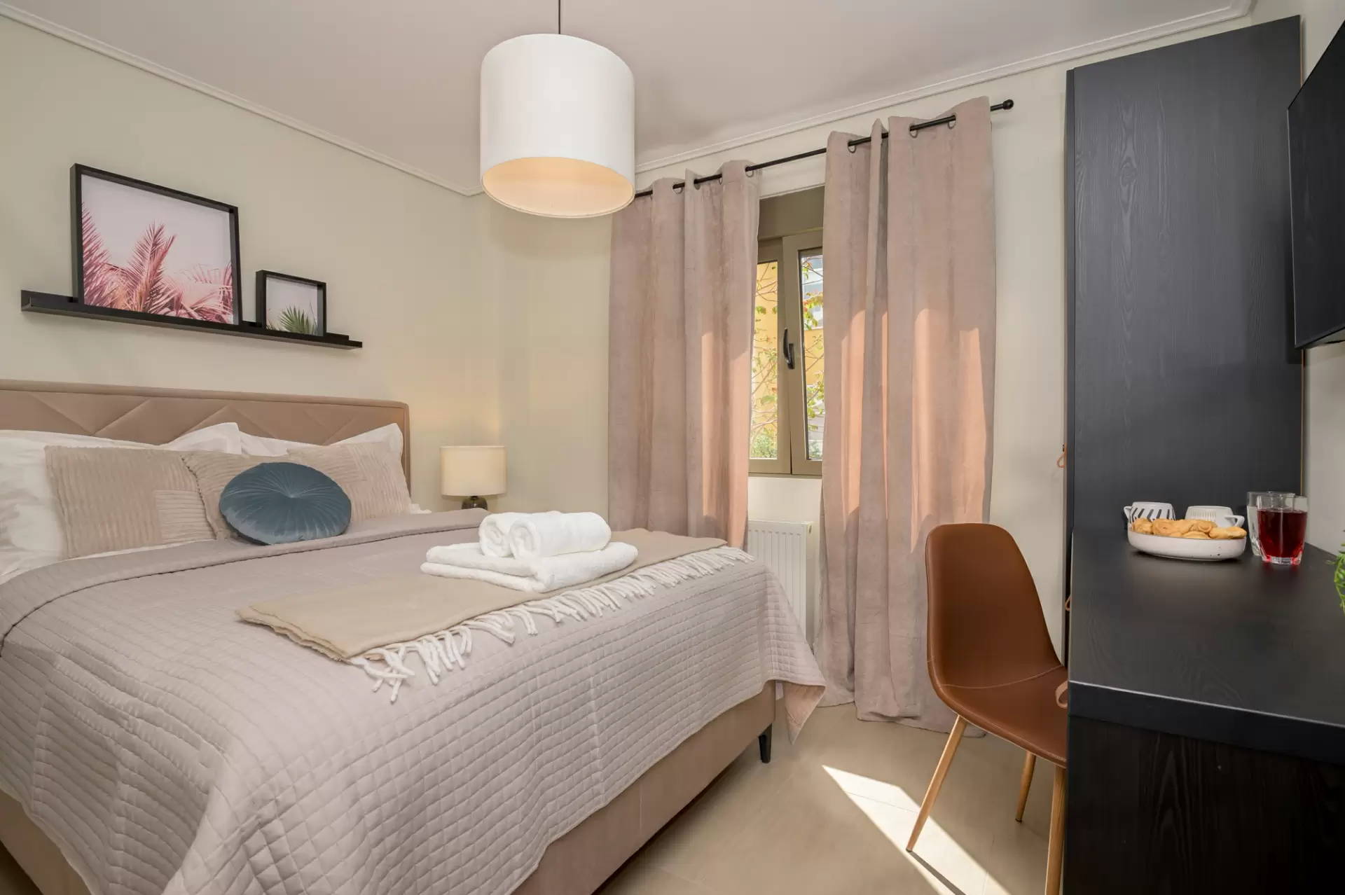 The apartment’s bedrooms have reposeful double beds for extra coziness.
