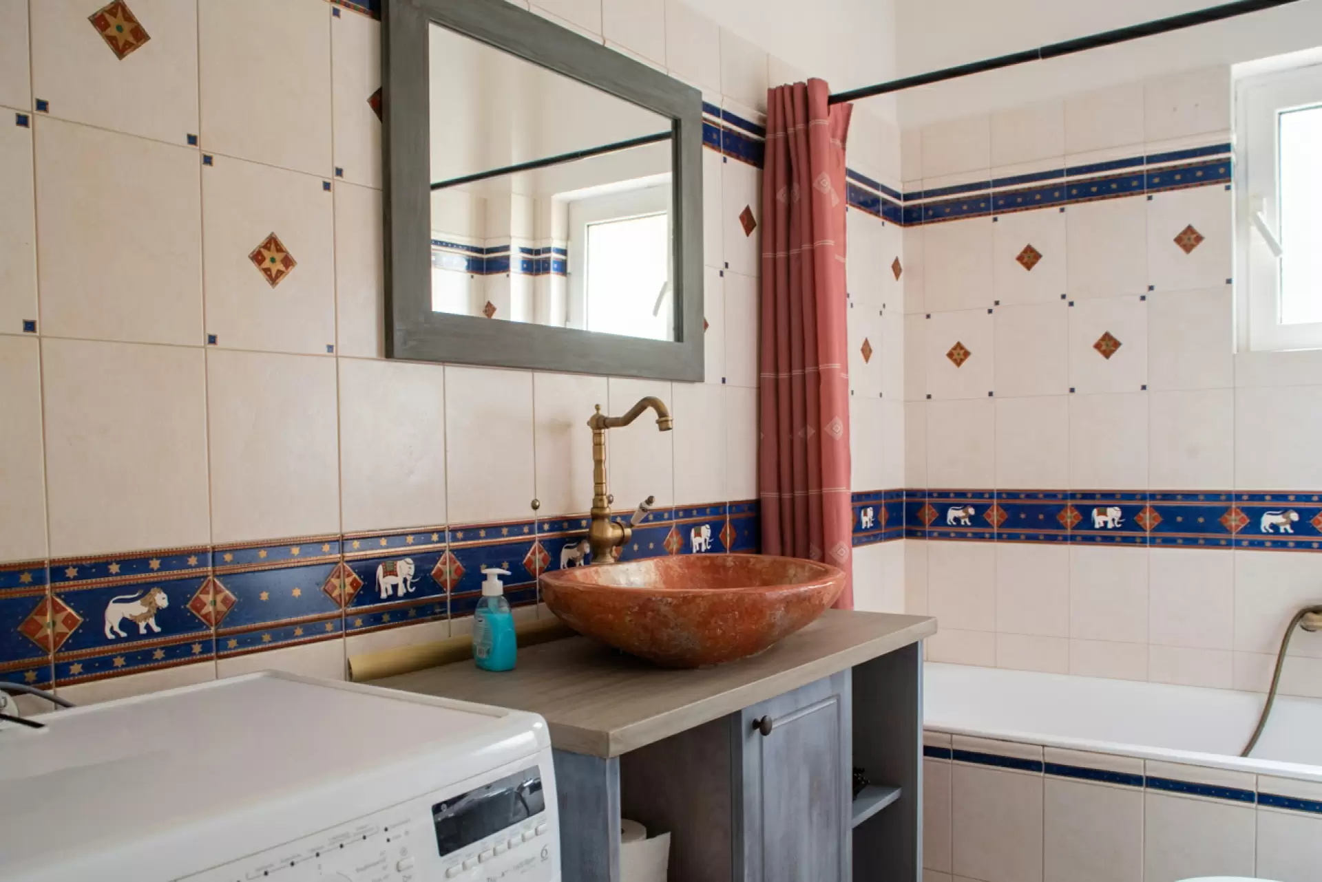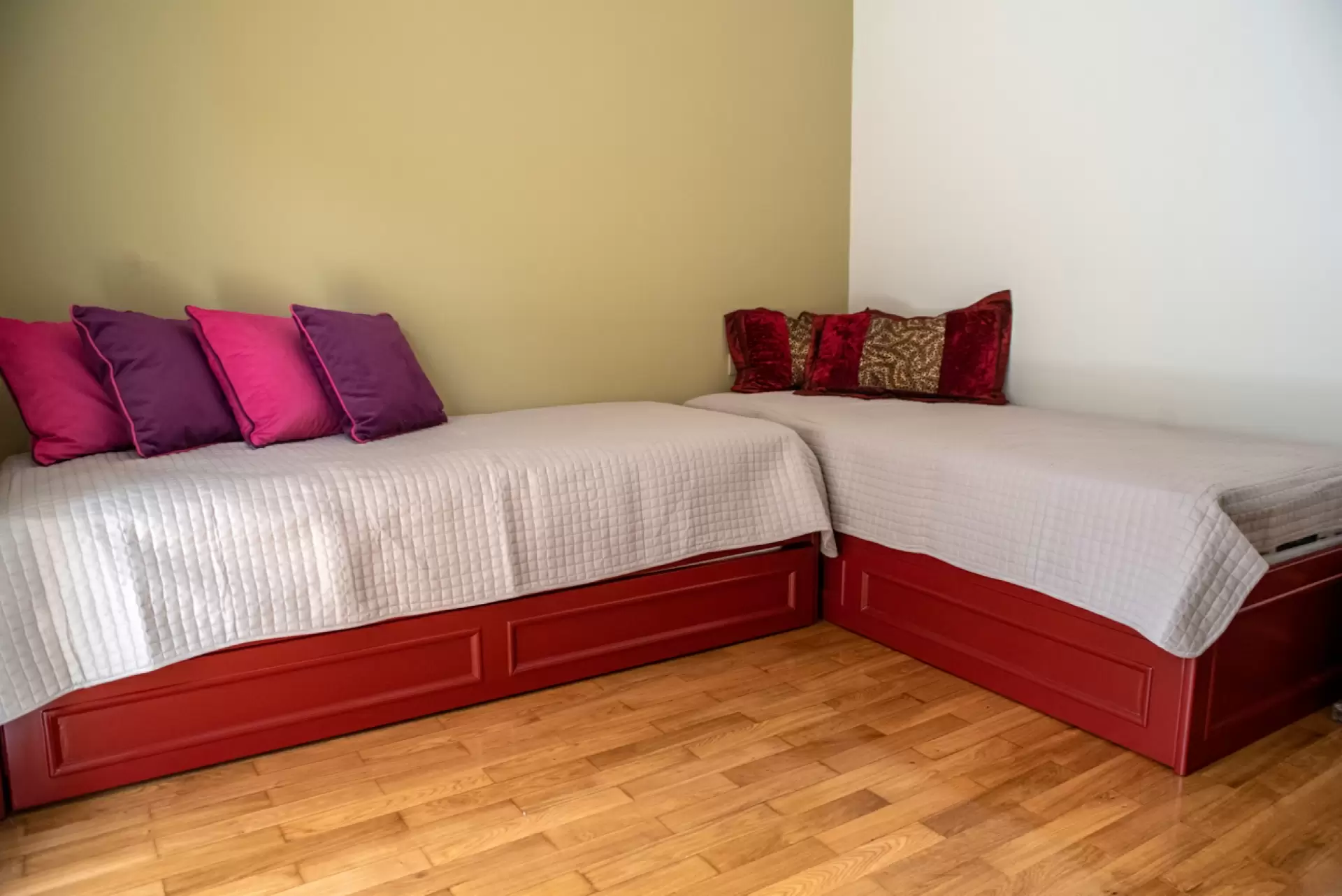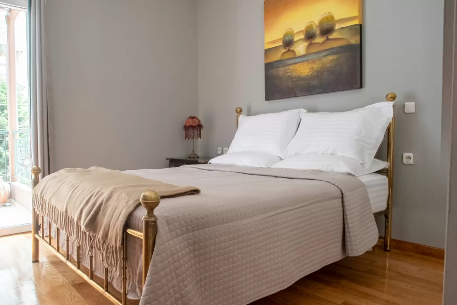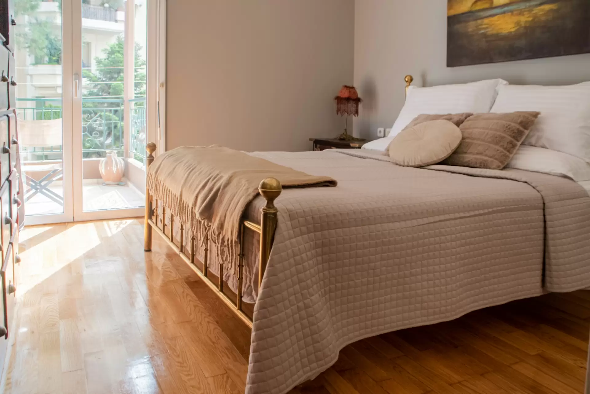 The apartment’s 2 bedrooms have 1 reposeful double bed and 2 single beds.
